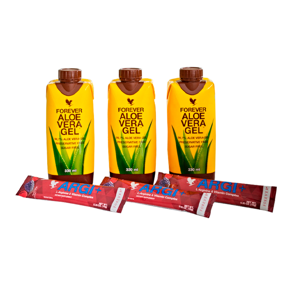 Ενισχύστε τη φυσική σας κατάσταση φτάνοντας στους fitness στόχους σας με την προηγμένη διατροφή των ARGI + και Forever Aloe Vera Gel, το τέλειο ζευγάρι για να σας βοηθήσουμε να φαίνεστε καλύτερα και να αισθανθείτε καλύτερα. Το συνδυαστικό πακέτο της Forever περιλαμβάνει τρία μπουκάλια 330ml Forever Aloe Vera Gel και τρία φακελάκια ARGI +.
